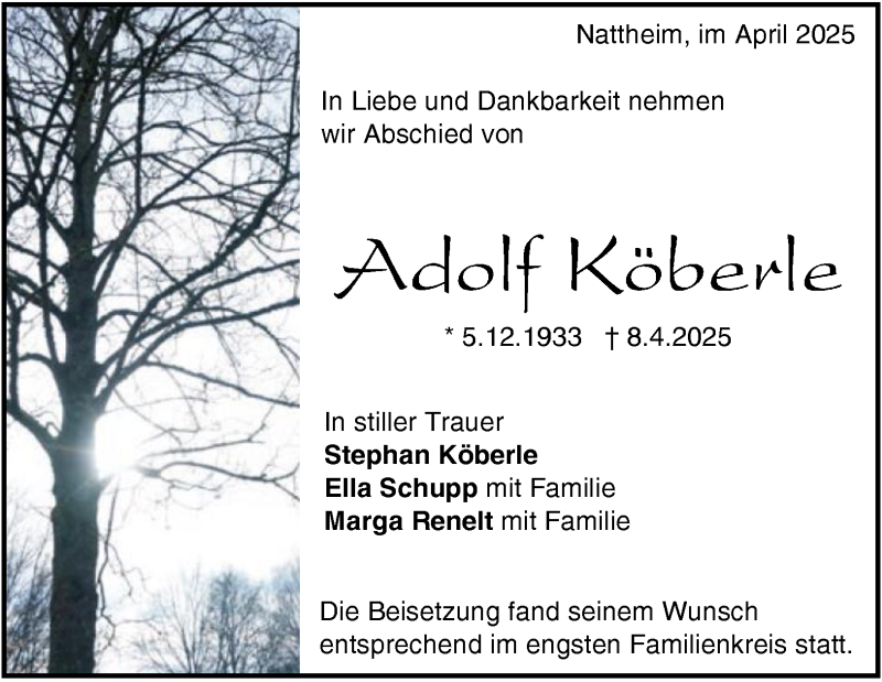 Hier finden Sie alle Traueranzeigen aus der Zeitung, die bisher für Adolf Köberle erschienen sind. Weitere Traueranzeigen, die in der Zeitung erscheinen, werden hier ebenfalls aufgelistet