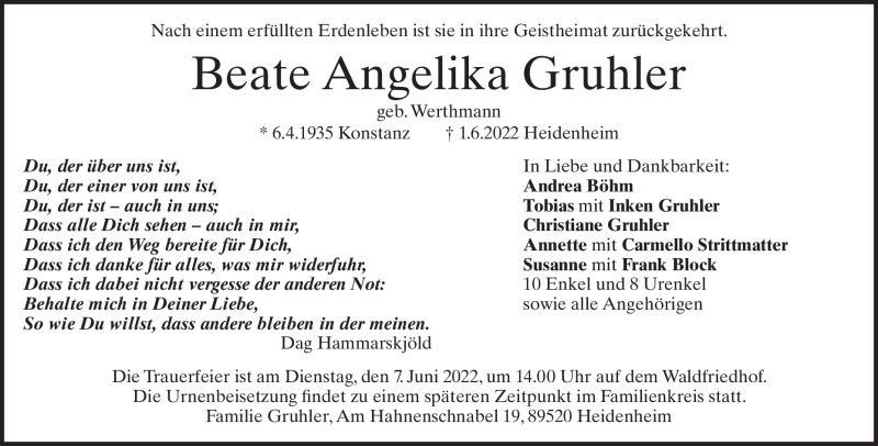 Hier finden Sie alle Traueranzeigen aus der Zeitung, die bisher für Beate Gruhler erschienen sind. Weitere Traueranzeigen, die in der Zeitung erscheinen, werden hier ebenfalls aufgelistet