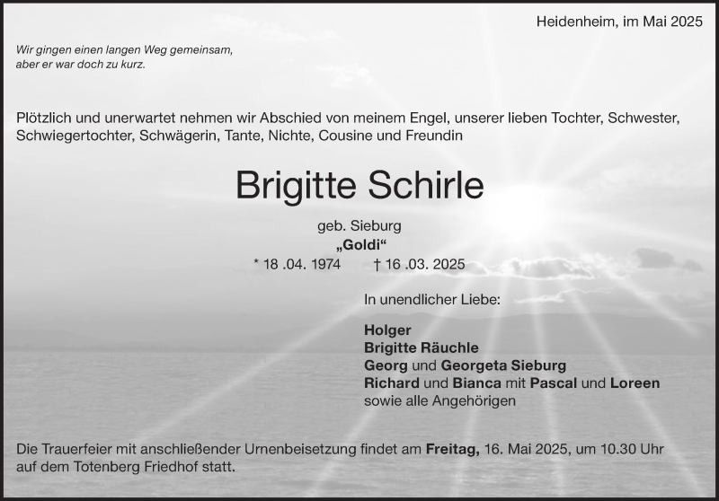 Hier finden Sie alle Traueranzeigen aus der Zeitung, die bisher für Brigitte Schirle erschienen sind. Weitere Traueranzeigen, die in der Zeitung erscheinen, werden hier ebenfalls aufgelistet