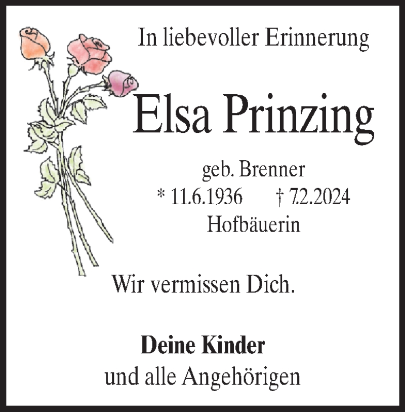 Hier finden Sie alle Traueranzeigen aus der Zeitung, die bisher für Elsa Prinzing erschienen sind. Weitere Traueranzeigen, die in der Zeitung erscheinen, werden hier ebenfalls aufgelistet