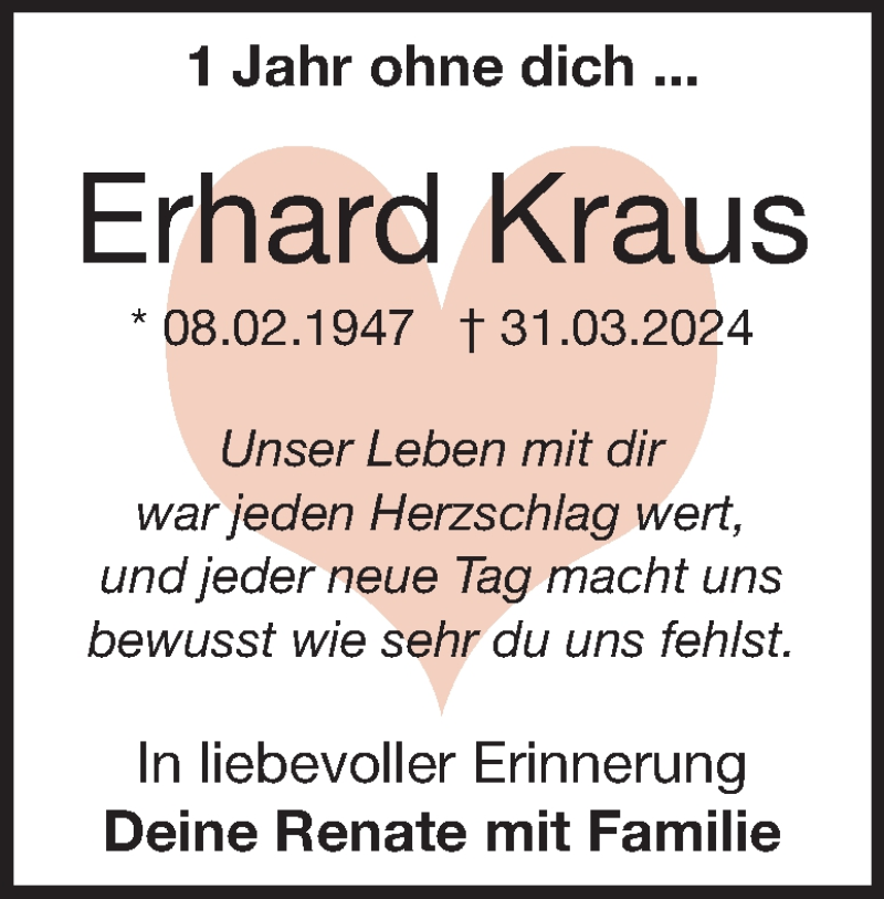 Hier finden Sie alle Traueranzeigen aus der Zeitung, die bisher für Erhard Kraus erschienen sind. Weitere Traueranzeigen, die in der Zeitung erscheinen, werden hier ebenfalls aufgelistet