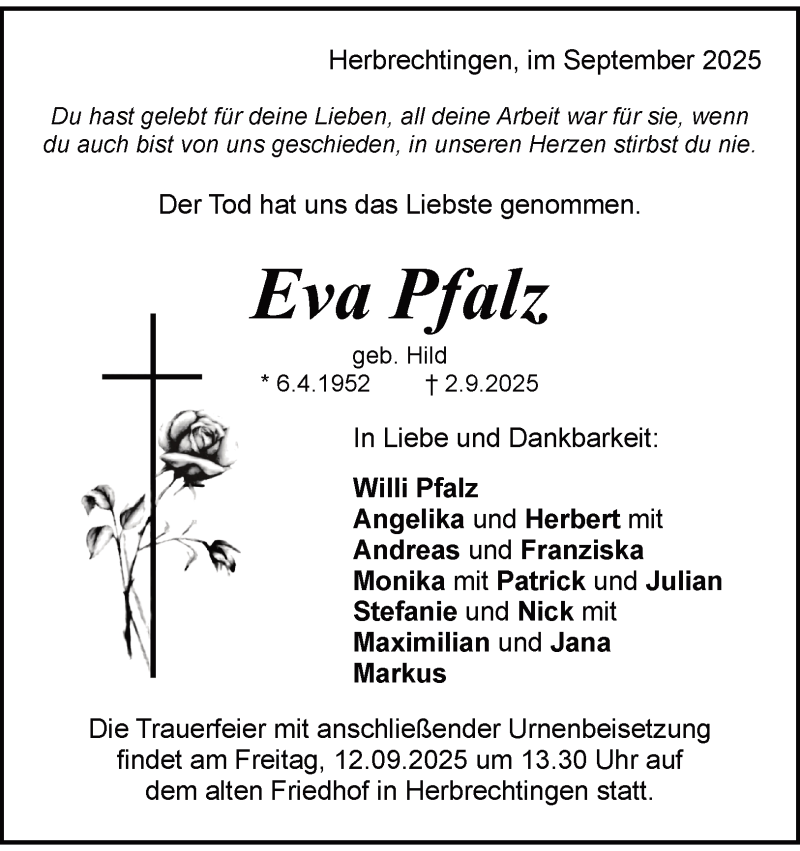 Hier finden Sie alle Traueranzeigen aus der Zeitung, die bisher für Eva Maria Pfalz erschienen sind. Weitere Traueranzeigen, die in der Zeitung erscheinen, werden hier ebenfalls aufgelistet