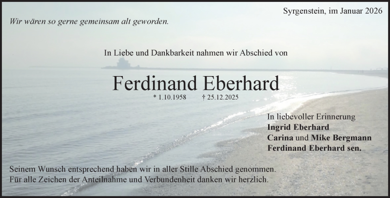 Hier finden Sie alle Traueranzeigen aus der Zeitung, die bisher für Ferdinand Eberhard erschienen sind. Weitere Traueranzeigen, die in der Zeitung erscheinen, werden hier ebenfalls aufgelistet