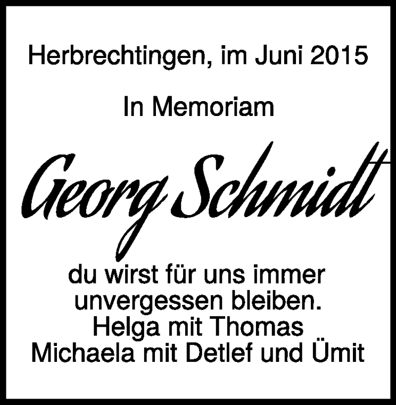 Hier finden Sie alle Traueranzeigen aus der Zeitung, die bisher für Georg Schmidt erschienen sind. Weitere Traueranzeigen, die in der Zeitung erscheinen, werden hier ebenfalls aufgelistet