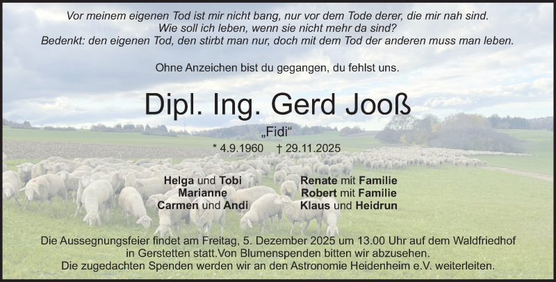 Hier finden Sie alle Traueranzeigen aus der Zeitung, die bisher für Gerd Jooß erschienen sind. Weitere Traueranzeigen, die in der Zeitung erscheinen, werden hier ebenfalls aufgelistet
