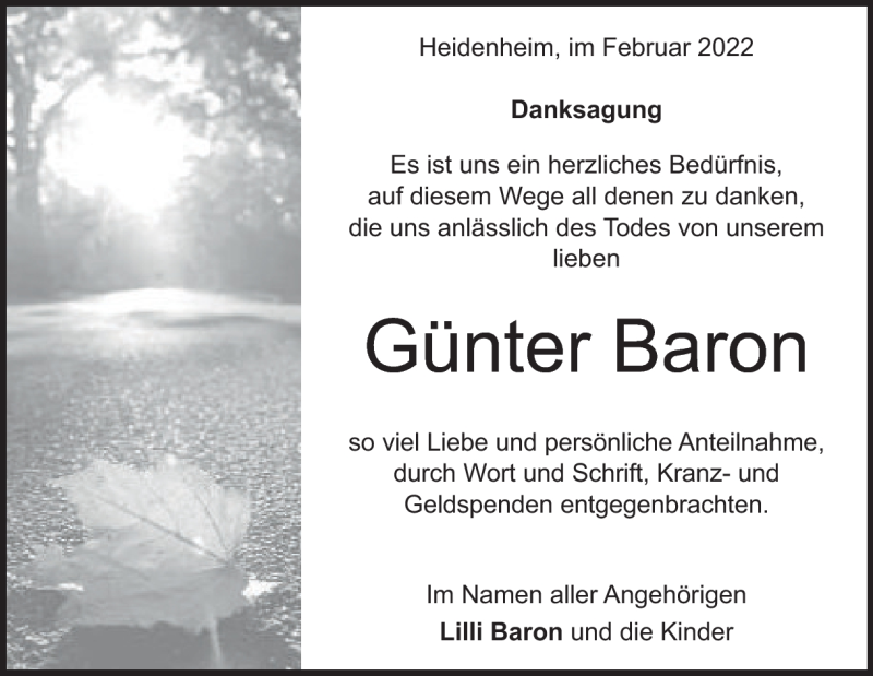 Hier finden Sie alle Traueranzeigen aus der Zeitung, die bisher für Günter Baron erschienen sind. Weitere Traueranzeigen, die in der Zeitung erscheinen, werden hier ebenfalls aufgelistet