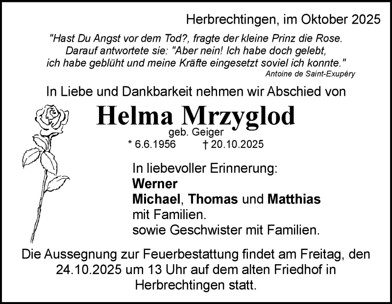 Hier finden Sie alle Traueranzeigen aus der Zeitung, die bisher für Helma Mrzyglod erschienen sind. Weitere Traueranzeigen, die in der Zeitung erscheinen, werden hier ebenfalls aufgelistet