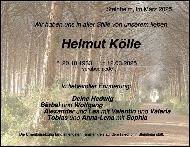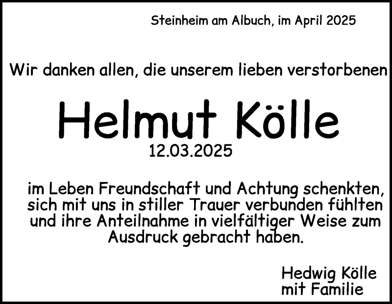 Hier finden Sie alle Traueranzeigen aus der Zeitung, die bisher für Helmut Kölle erschienen sind. Weitere Traueranzeigen, die in der Zeitung erscheinen, werden hier ebenfalls aufgelistet