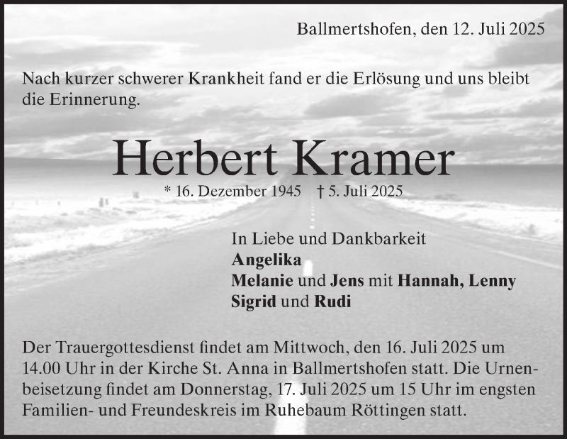 Hier finden Sie alle Traueranzeigen aus der Zeitung, die bisher für Herbert Kramer erschienen sind. Weitere Traueranzeigen, die in der Zeitung erscheinen, werden hier ebenfalls aufgelistet