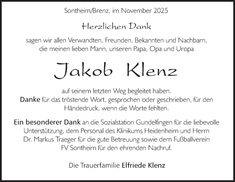 Hier finden Sie alle Traueranzeigen aus der Zeitung, die bisher für Jakob Klenz erschienen sind. Weitere Traueranzeigen, die in der Zeitung erscheinen, werden hier ebenfalls aufgelistet
