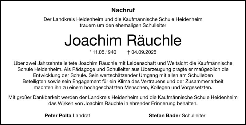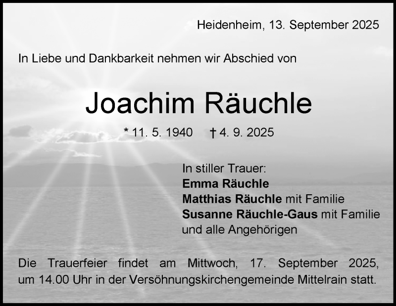 Hier finden Sie alle Traueranzeigen aus der Zeitung, die bisher für Joachim Räuchle erschienen sind. Weitere Traueranzeigen, die in der Zeitung erscheinen, werden hier ebenfalls aufgelistet