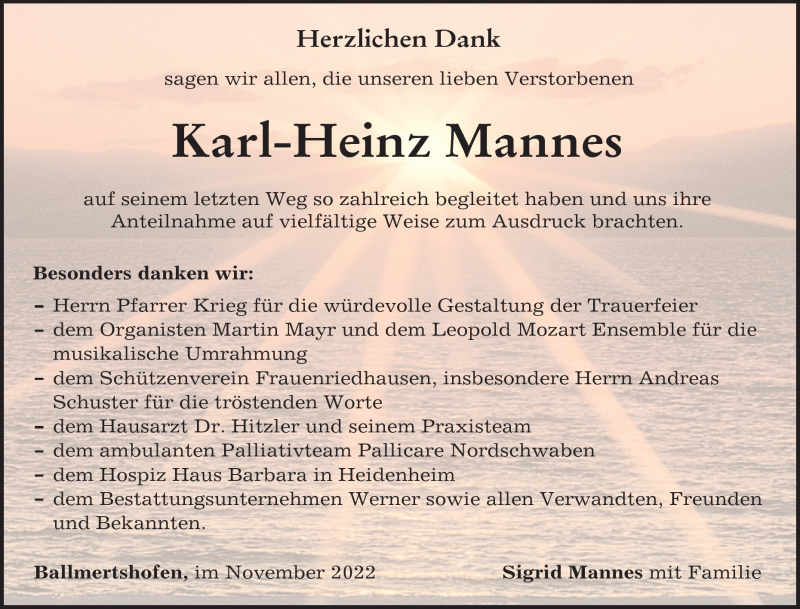 Hier finden Sie alle Traueranzeigen aus der Zeitung, die bisher für Karl-Heinz Mannes erschienen sind. Weitere Traueranzeigen, die in der Zeitung erscheinen, werden hier ebenfalls aufgelistet