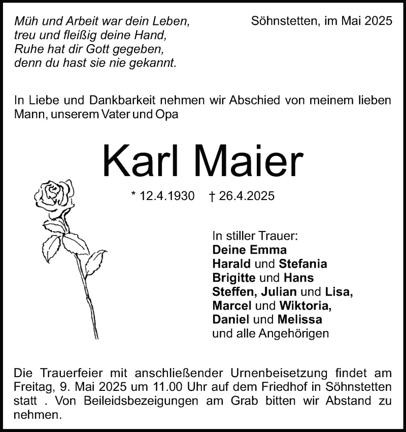 Hier finden Sie alle Traueranzeigen aus der Zeitung, die bisher für Karl Maier erschienen sind. Weitere Traueranzeigen, die in der Zeitung erscheinen, werden hier ebenfalls aufgelistet