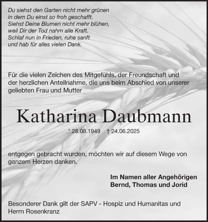 Hier finden Sie alle Traueranzeigen aus der Zeitung, die bisher für Katharina Daubmann erschienen sind. Weitere Traueranzeigen, die in der Zeitung erscheinen, werden hier ebenfalls aufgelistet