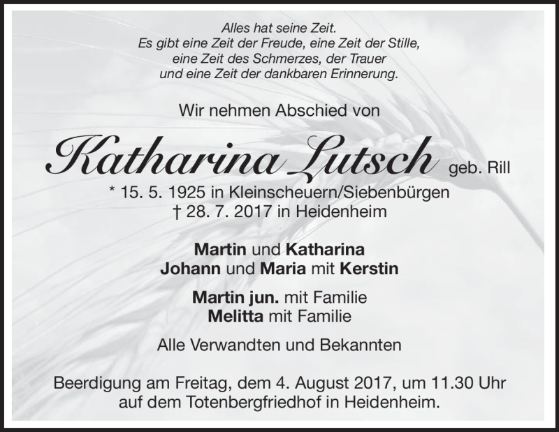 Hier finden Sie alle Traueranzeigen aus der Zeitung, die bisher für Katharina Lutsch erschienen sind. Weitere Traueranzeigen, die in der Zeitung erscheinen, werden hier ebenfalls aufgelistet