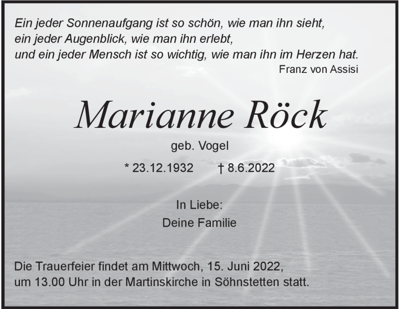 Hier finden Sie alle Traueranzeigen aus der Zeitung, die bisher für Marianne Röck erschienen sind. Weitere Traueranzeigen, die in der Zeitung erscheinen, werden hier ebenfalls aufgelistet