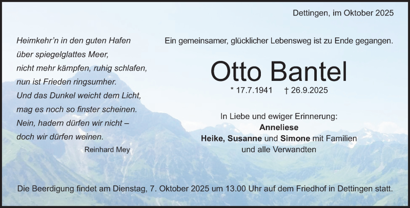 Hier finden Sie alle Traueranzeigen aus der Zeitung, die bisher für Otto Bantel erschienen sind. Weitere Traueranzeigen, die in der Zeitung erscheinen, werden hier ebenfalls aufgelistet