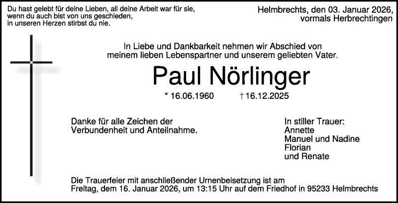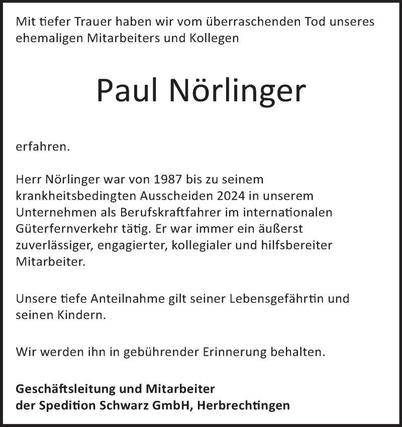 Hier finden Sie alle Traueranzeigen aus der Zeitung, die bisher für Paul Nörlinger erschienen sind. Weitere Traueranzeigen, die in der Zeitung erscheinen, werden hier ebenfalls aufgelistet