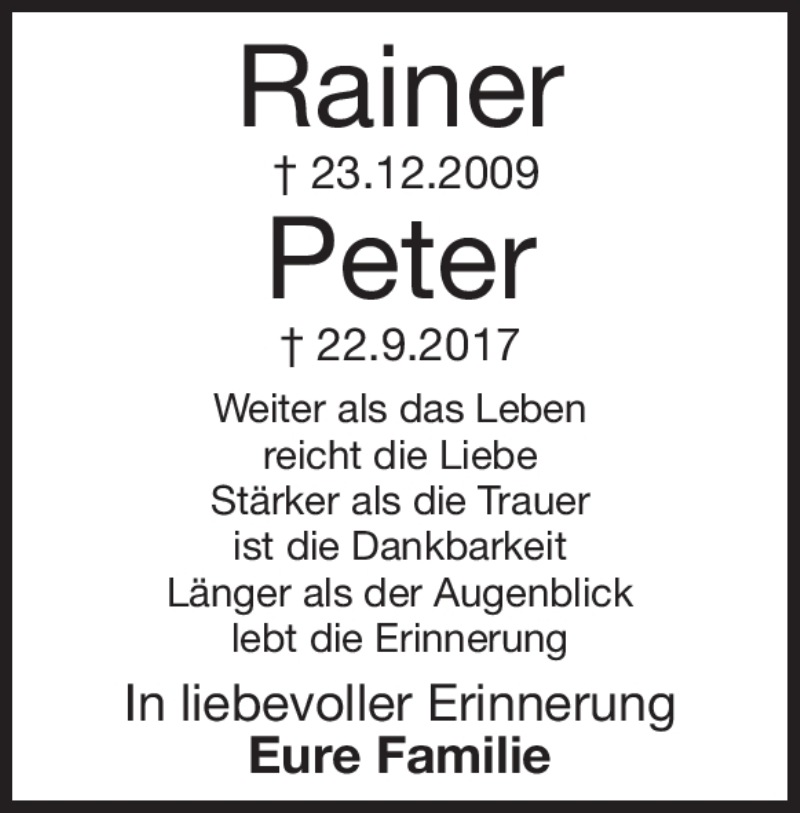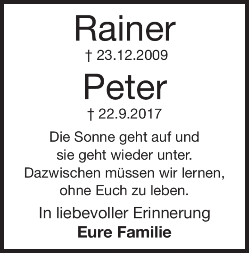 Hier finden Sie alle Traueranzeigen aus der Zeitung, die bisher für Peter Niederberger erschienen sind. Weitere Traueranzeigen, die in der Zeitung erscheinen, werden hier ebenfalls aufgelistet