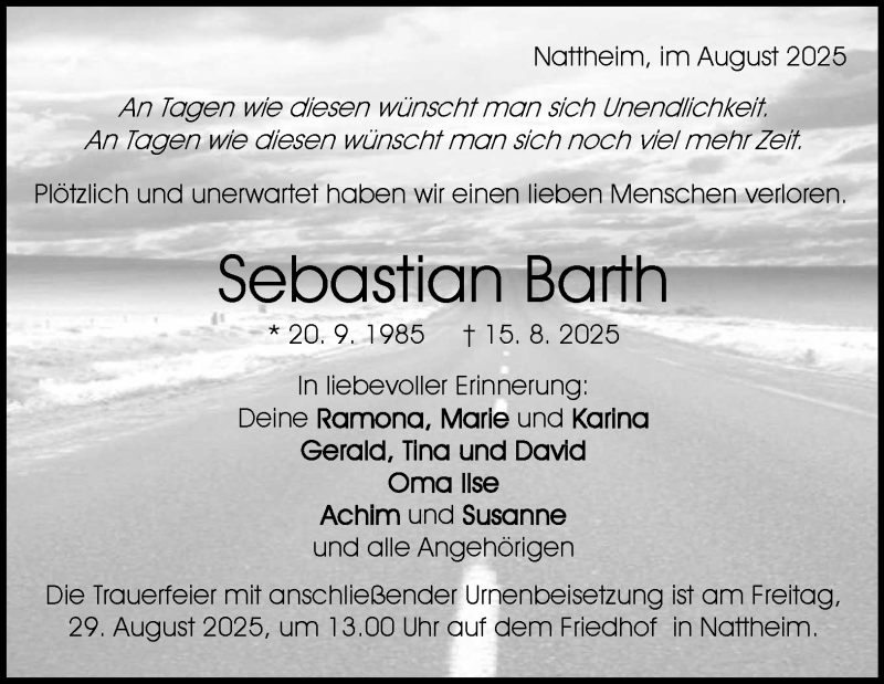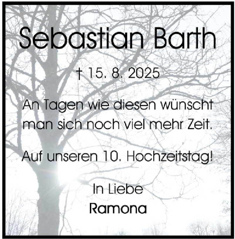 Hier finden Sie alle Traueranzeigen aus der Zeitung, die bisher für Sebastian Barth erschienen sind. Weitere Traueranzeigen, die in der Zeitung erscheinen, werden hier ebenfalls aufgelistet