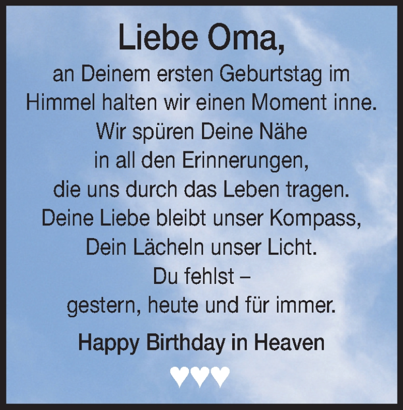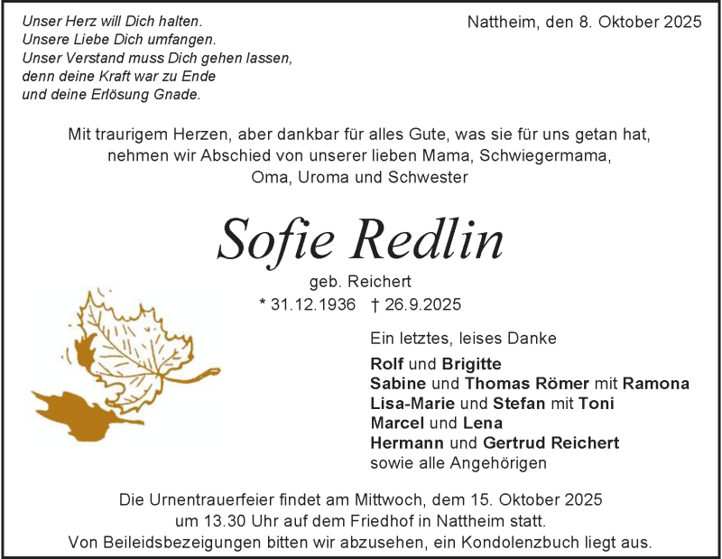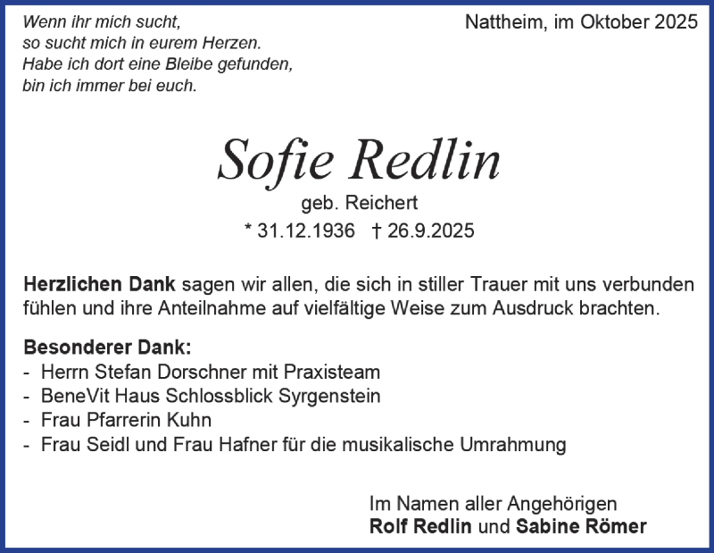 Hier finden Sie alle Traueranzeigen aus der Zeitung, die bisher für Sofie Redlin erschienen sind. Weitere Traueranzeigen, die in der Zeitung erscheinen, werden hier ebenfalls aufgelistet